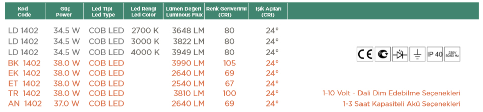 • Cree Cxa Serisi, Tridonic Les Serisi, Osram, Citizen Led Serilerine uygundur.