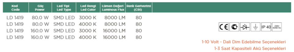 Ürün Özellikleri • Opal pleksi • 230-240V / 50-60Hz enerji girişli. • Tridonic Led Serilerine uygundur. • Elektro statik toz boyama.