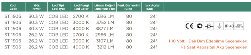 • Cree Cxa Serisi, Tridonic Les Serisi, Osram, Citizen Led Serilerine uygundur.