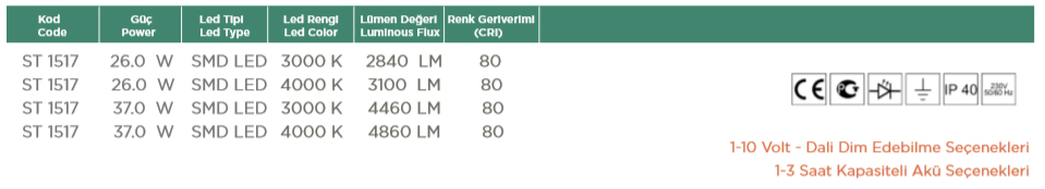 • Tridonic Led Serilerine uygundur.