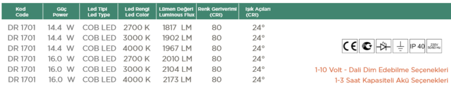 • Cree Cxa Serisi, Tridonic Les Serisi, Osram, Citizen Led Serilerine uygundur.