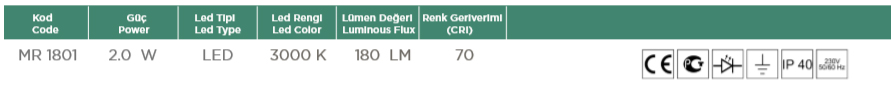 Ürün Özellikleri • Aluminyum enjeksiyon gövde. • 230-240V / 50-60Hz enerji girişli.